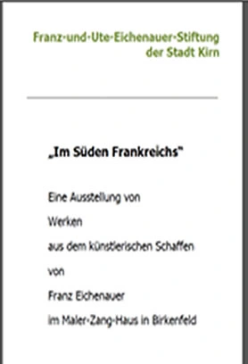 Mit einer neuen Konzeption eröffnete das Maler-Zang-Haus in der Kreisstadt Birkenfeld 2015 die Kultur- und Ausstellungsreihe. 39 Gemälde von Franz Eichenauer wurden in der Vernissage am 01.03.2015 der Öffentlichkeit vorgestellt. Claudia Frey, die Tochter des Ehepaares Eichenauer, erläuterte in entsprechenden Führungen die ausgestellten Gemälde ihres Vaters.